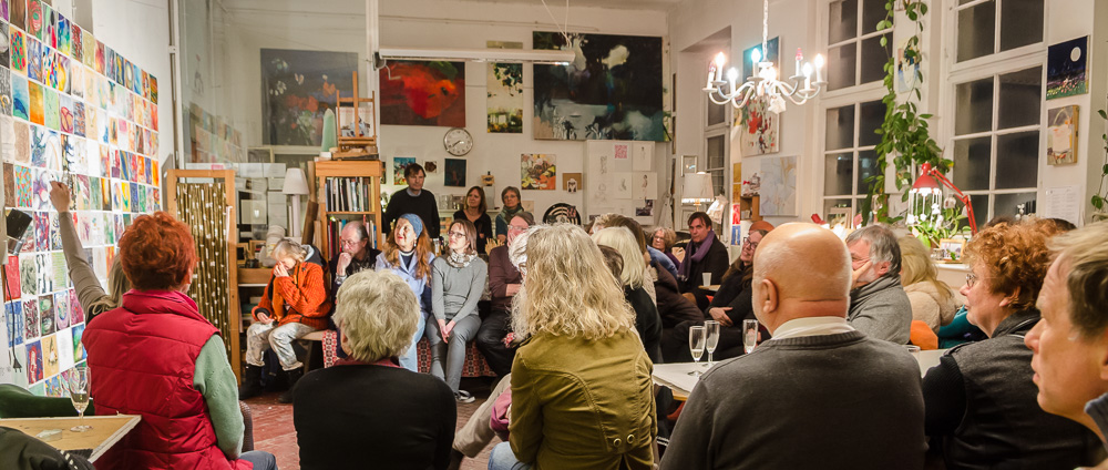 Am Heiligen Dreikönigstag dem 6.01.2015 feierten wir in meinem Atelier den Abschluss des diesjährigen Rauhnächtekurses, der vom 25.12 bis zum 5.01.2015 dauerte und an dem 14 Menschen teilnahmen. Es war eine schöne Finissage, mein Atelier war selten so voll und ich war erfüllt mit Dankbarkeit für die gemeimsame Arbeit und die besonderen Bilder dieser Zeit.