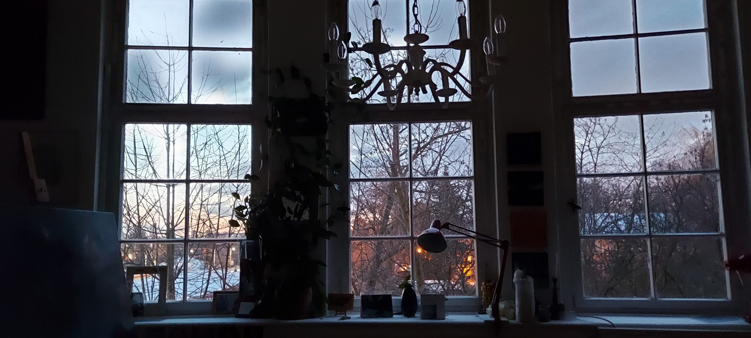 13. Januar 2021 Atelier Stimmung Heute morgen um 7.45Uhr im Atelier. Die Sonne geht auf… Teilen mit:E-MailFacebook