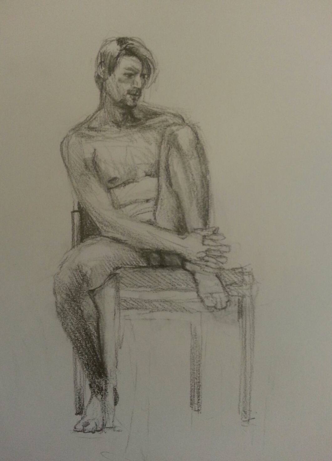 Dieser männliche Akt ist in einer Aktsession für Architekturstudenten an der TU Darmstadt entstanden. 20x16cm